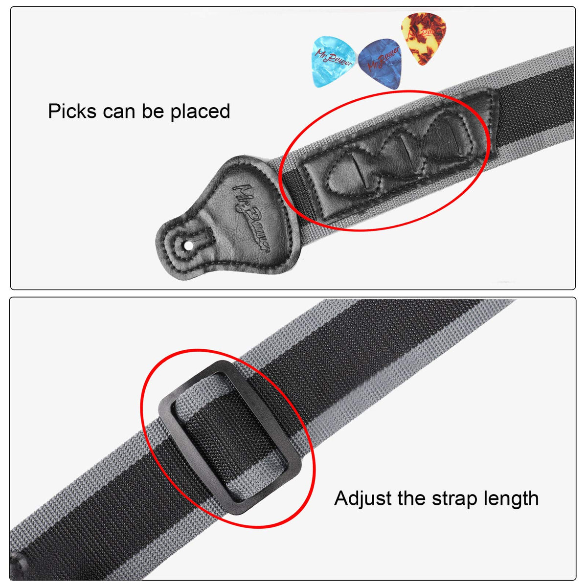 Mr.Power Guitar Strap 36.6in - 65in with 3 Pick Holders for Electric/Acoustic Guitar, Nylon Strap