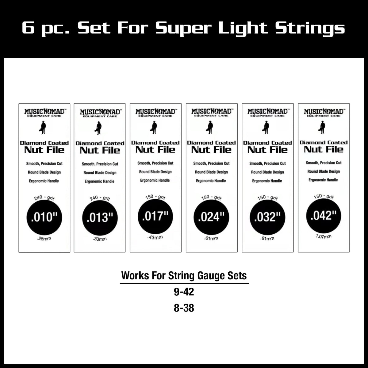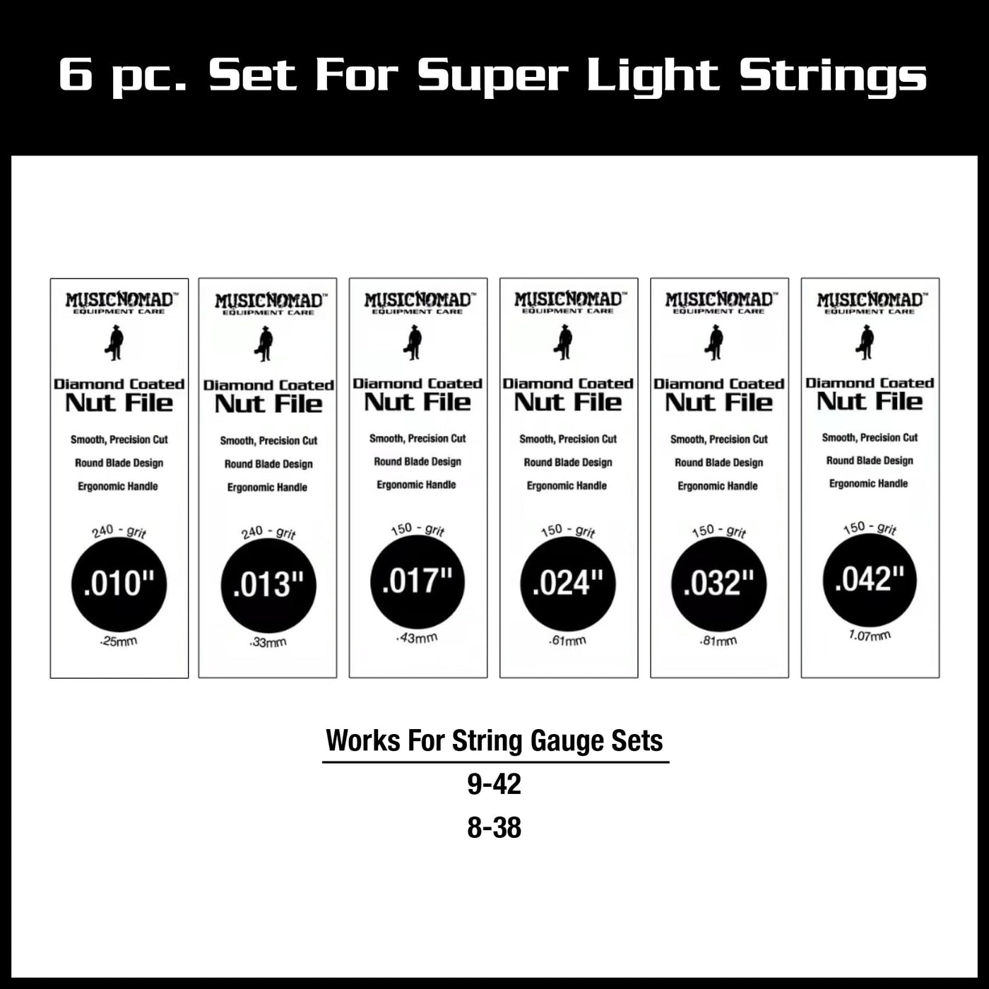 MusicNomad 6 pc. Electric Guitar Diamond Coated Nut File Set - Super Light Strings (MN667)
