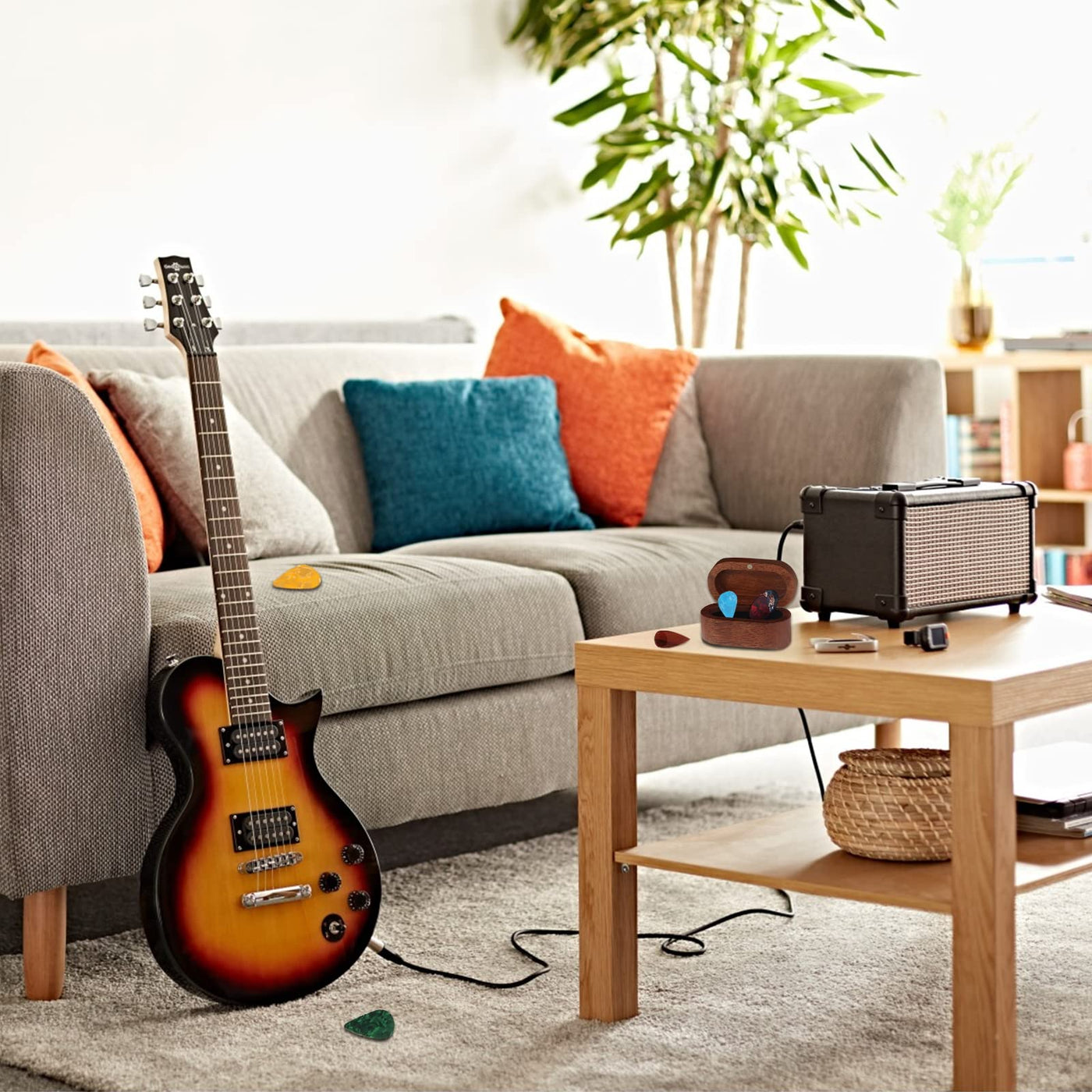 • Q: What makes this guitar pick holder unique? A: Each box is crafted from different pieces of natural wood, giving it a unique texture and color.