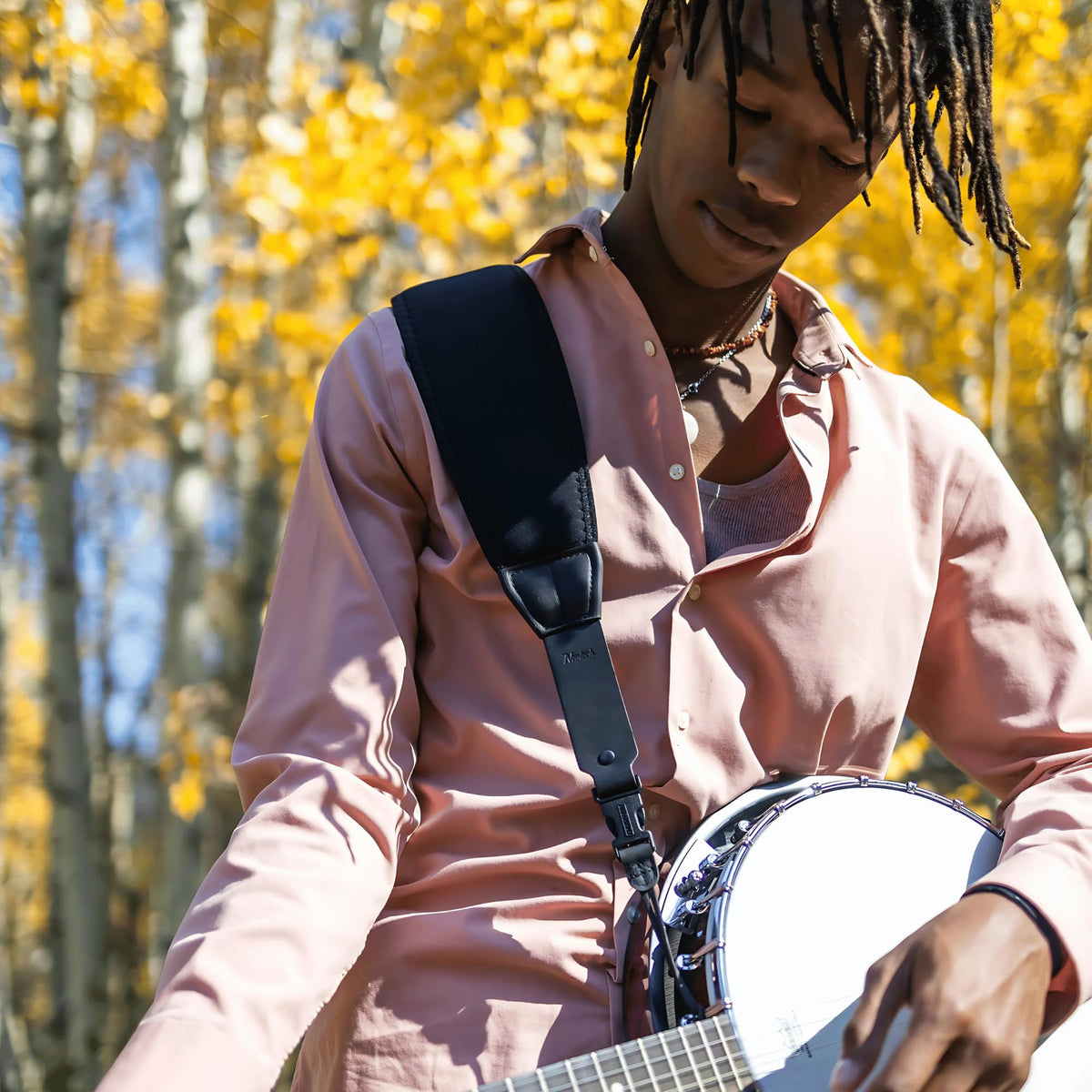 • Q: Is the Mega Banjo Strap suitable for long playing sessions? A: Yes, the Mega Banjo Strap is designed for avid musicians, providing comfort that helps eliminate shoulder fatigue during long playing sessions.