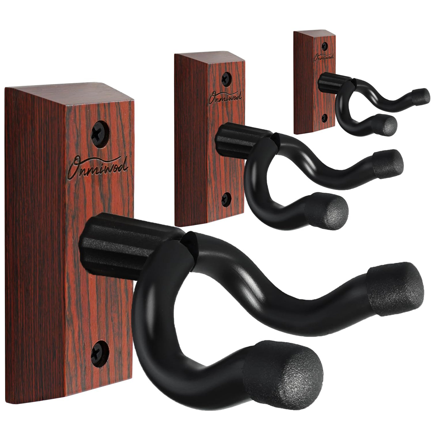 Onmiwod Guitar Wall Mount 3 Pack, Carbonized Red Wood Guitar Hanger, U-Shaped Guitar Wall Hanger Mount, Guitar Holder Wall Hook