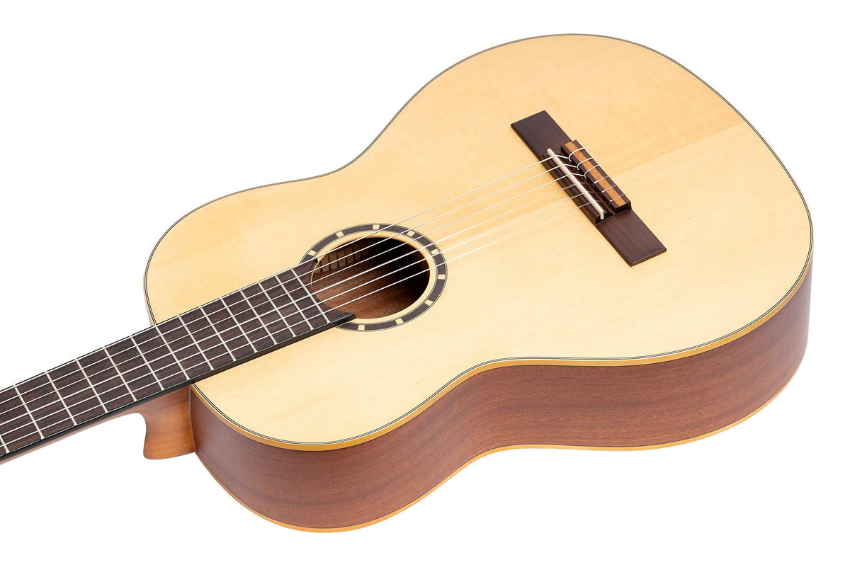 Ortega Guitars 6 String Family Series Full Size Left-Handed Nylon Classical Guitar w/Bag, Spruce Top-Natural-Satin, (R121L)