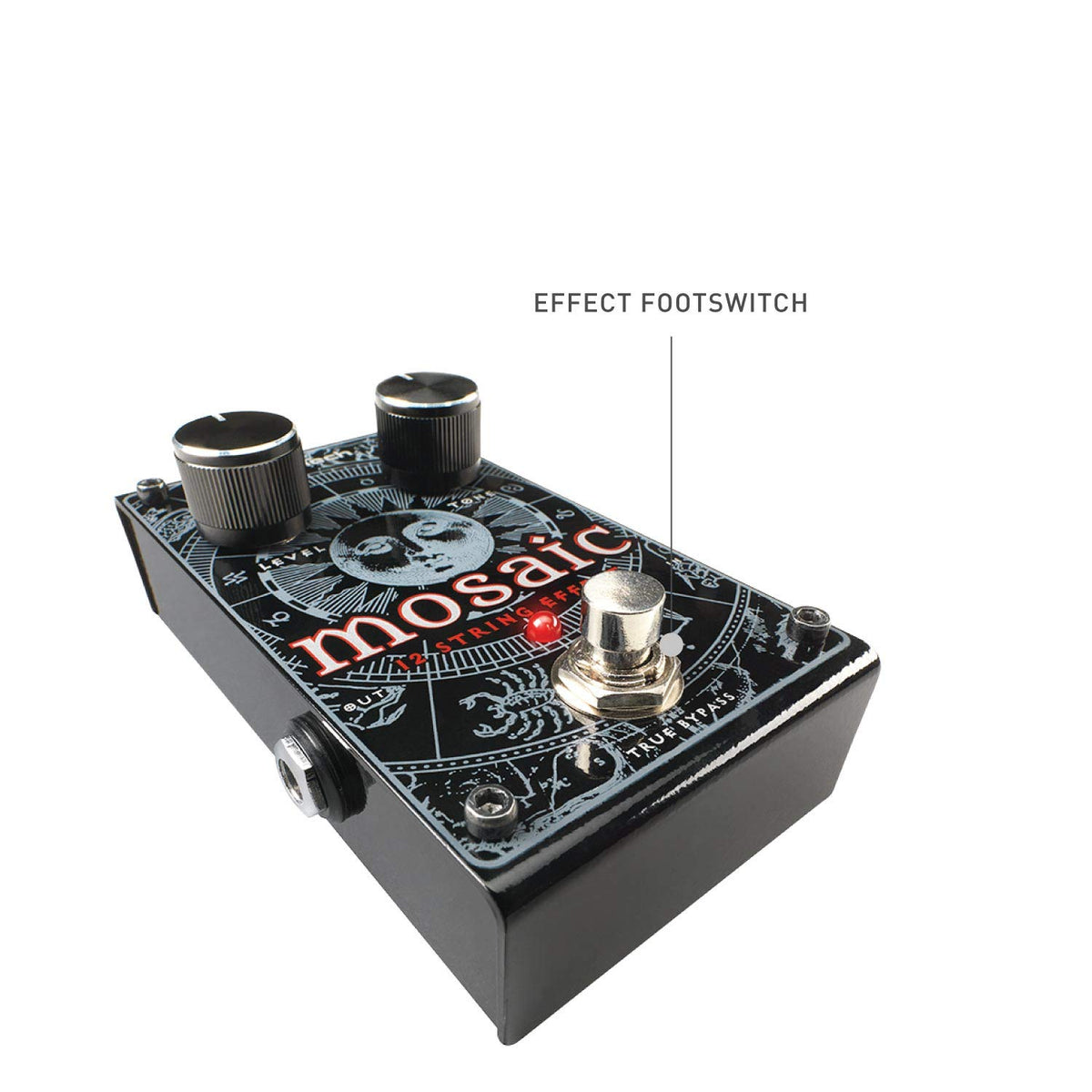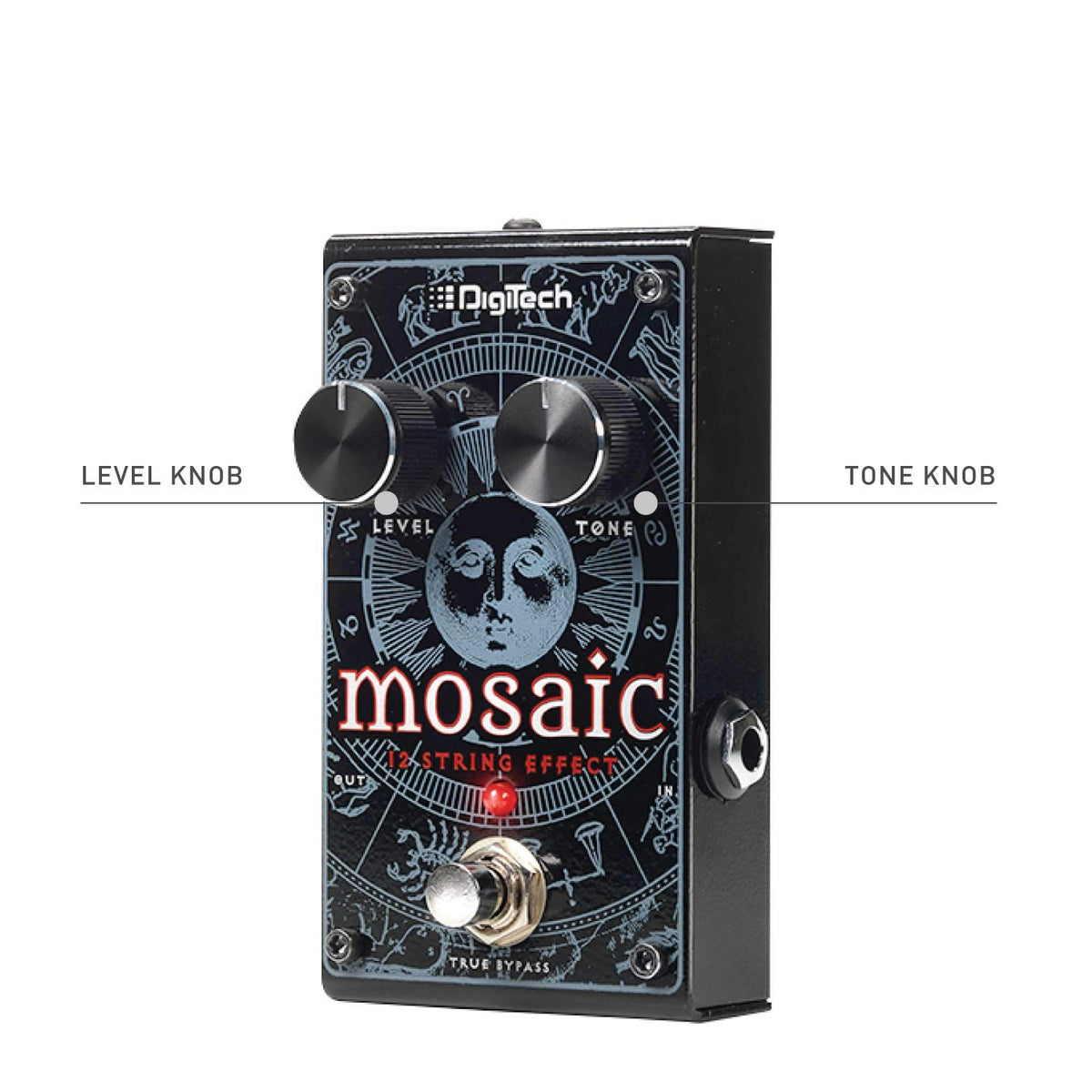 • Q: What are the main controls on the Mosaic pedal? A: The Mosaic pedal features independent level and tone controls, allowing you to adjust the intensity of the 12-string effect and the overall brightness of the sound.