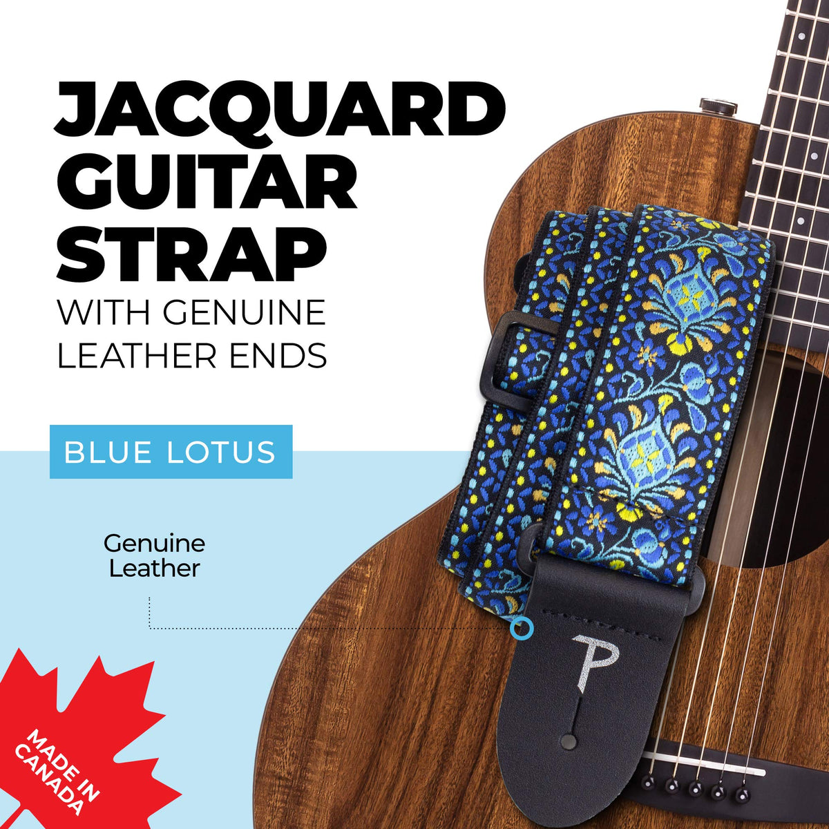 Perri's Leathers Ltd.- Guitar Strap - Nylon - Jacquard- Blue Lotus - Adjustable - for Acoustic/Bass/Electric Guitars - Made in C