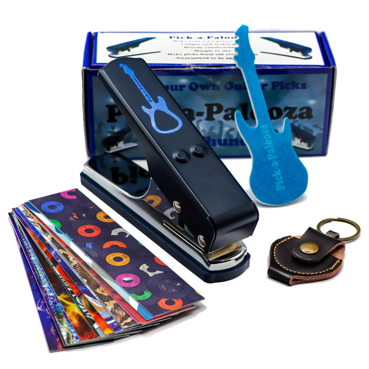 Pick-a-Palooza DIY Guitar Pick Punch Mega Gift Pack - the Premium Guitar Pick Maker - Includes Leather Key Chain Pick Holder, 15