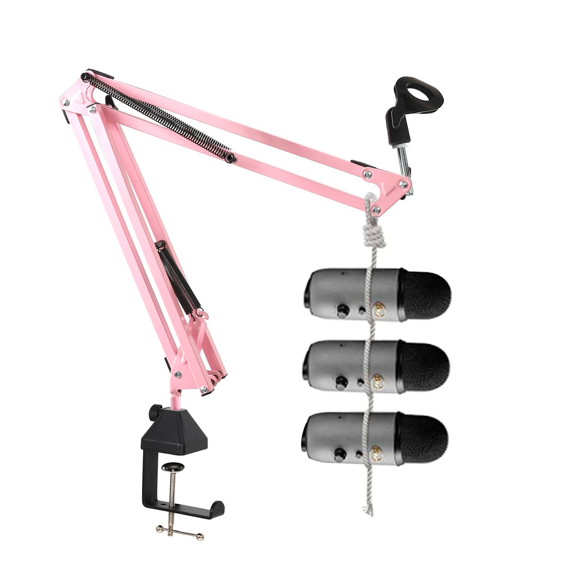 Pink Microphone Stand, Mic Boom Arm Suspension Scissor with Shock Mount Microphone Clip Holder Upgraded Desk Clamp for Blue Yeti