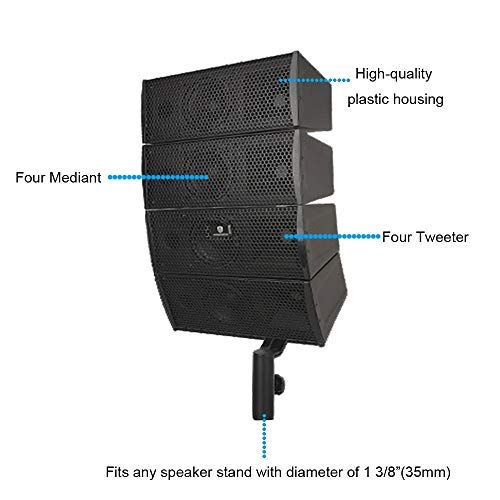 • Q: How do I set up the speaker stands? A: To set up the speaker stands, simply extend the legs for stability, adjust the height to your preference, and securely mount the array speakers on the stands.