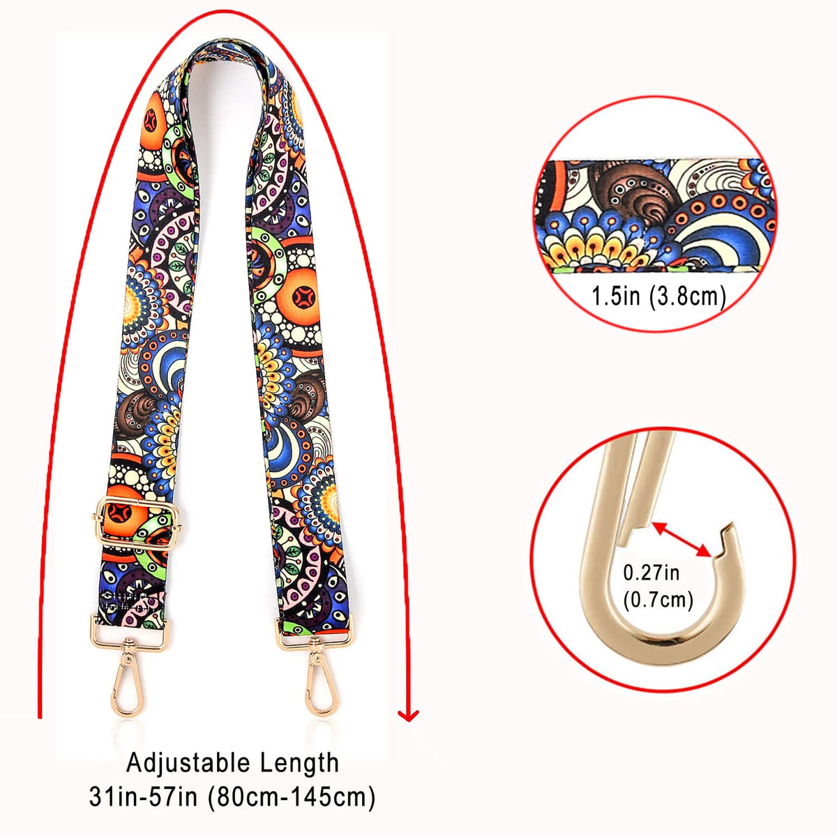1NEW DESIgN: New trendy design cross body handbag purse strap,beautiful style replace strap renew your bag,suitable for most of the chain bags crossbody bags satchels shoulder bags gym bags laptop bags messenger bags 2SIZE&ADJUSTABLE: The width of shoulder strap replacement is 1538cm,which could adjust from 31- 57(with clasps), these handbag straps are long enough to suit most people,comfortable to wear 3HIgH QUALITY: Made from nylon, sturdy metal buckles 360 degrees rotatable, easy to install and replace, you can change straps give these a try if you have any questions of our purse strap crossbody, just let us know and we will replace it 4cOMFORTABLE: This cross body strap which is wide style ensures it feels soft and comfortable on the shoulder, perfectly fit for constant use and travel Keep one extra for your long walk & trip 5gREAT gIFT: Nice guitar style strap bag straps replacement update the look of your bagSuper comfy and great for all kinds of activities, a sweet gift for you, family, friend