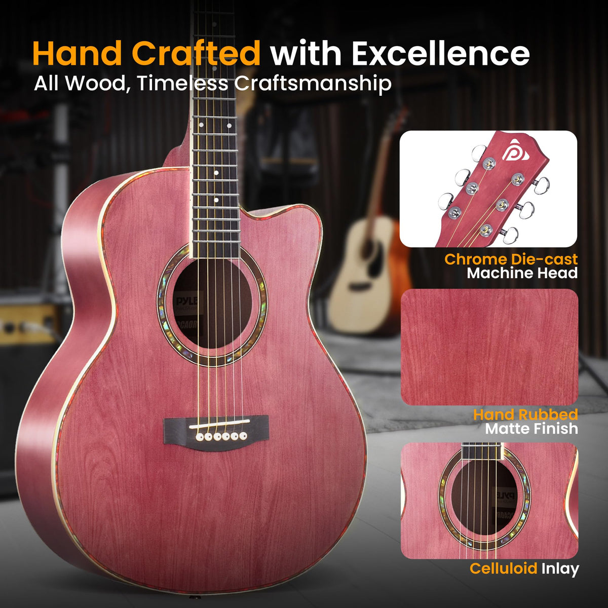 Pyle Acoustic Guitar Kit, 3/4 Junior Size All Wood Steel String Instrument for Beginner Kids, Adults, 36'' Deep Ruby
