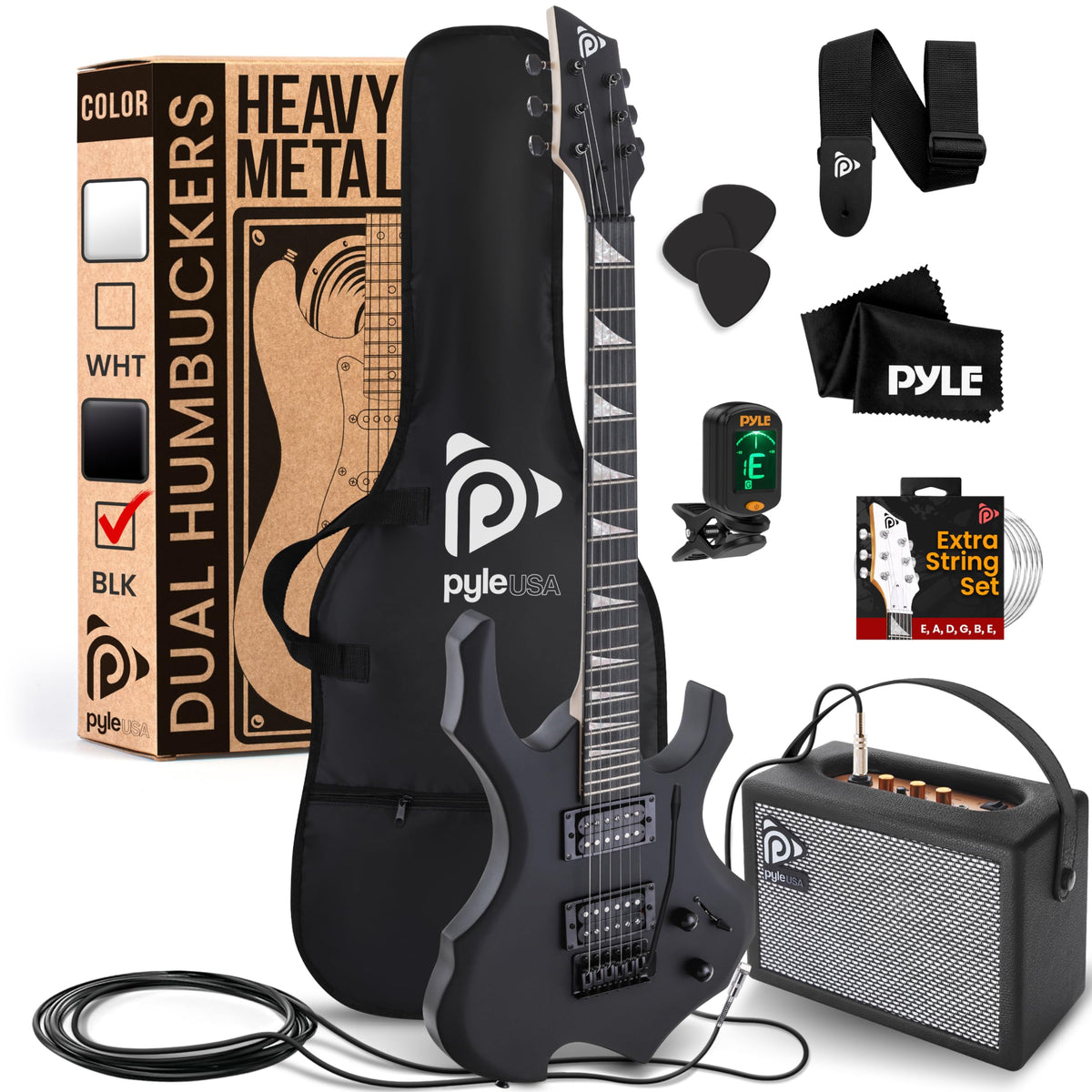 Pyle Heavy Metal EG Fire Electric Guitar Axe w/ Amplifier Kit, Full Size Instrument w/ Practice Amp & Accessories, Black Matte