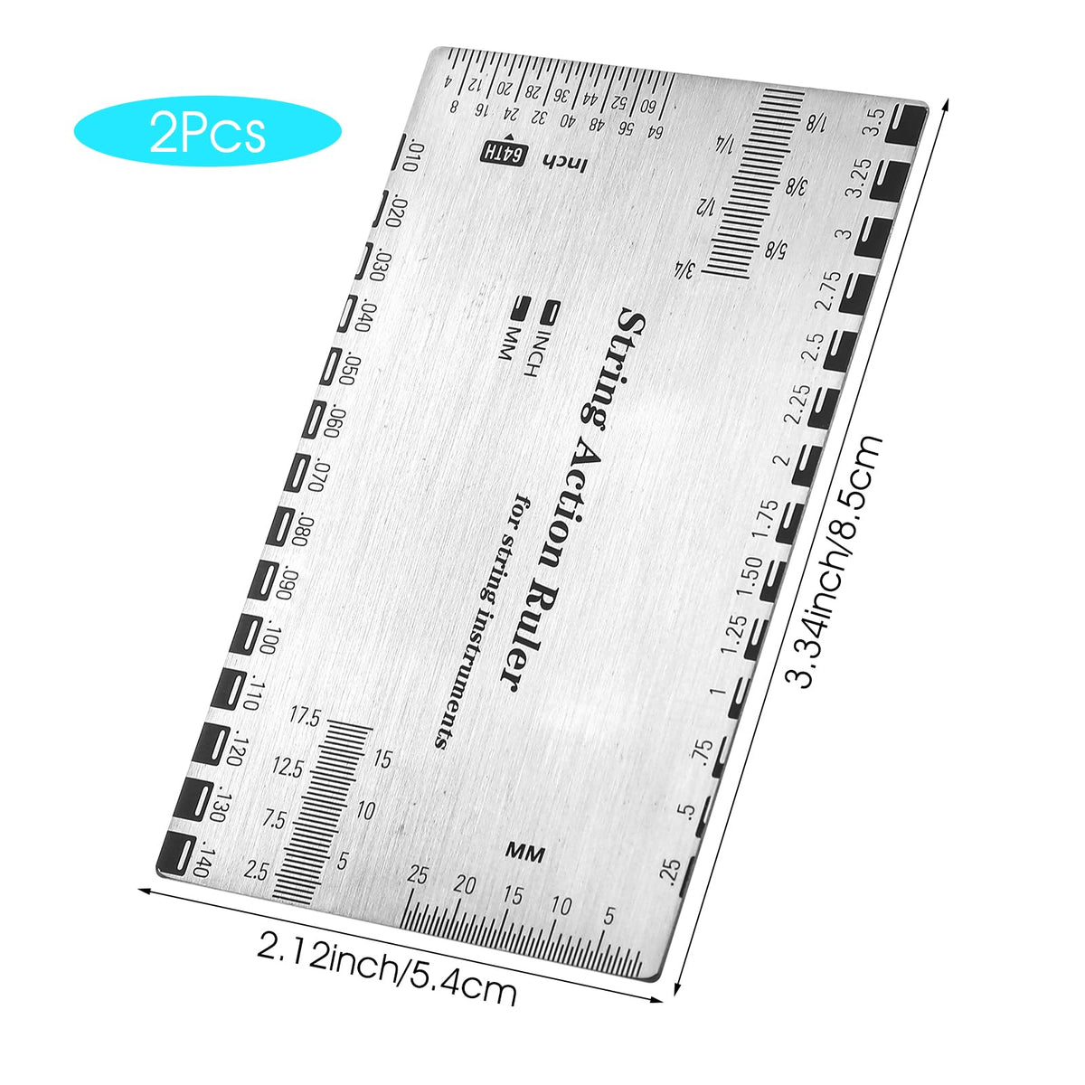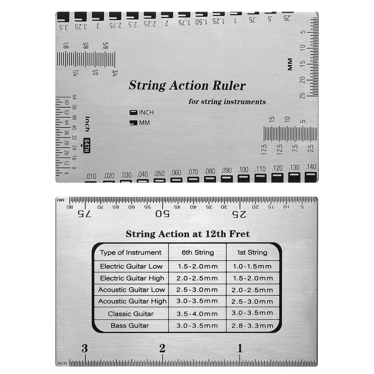 Qianyu 2 Pcs Guitar String Action Gauge Ruler Stainless Steel Guitar Setup Gauge Tool Luthier String Height Measuring Tool for E