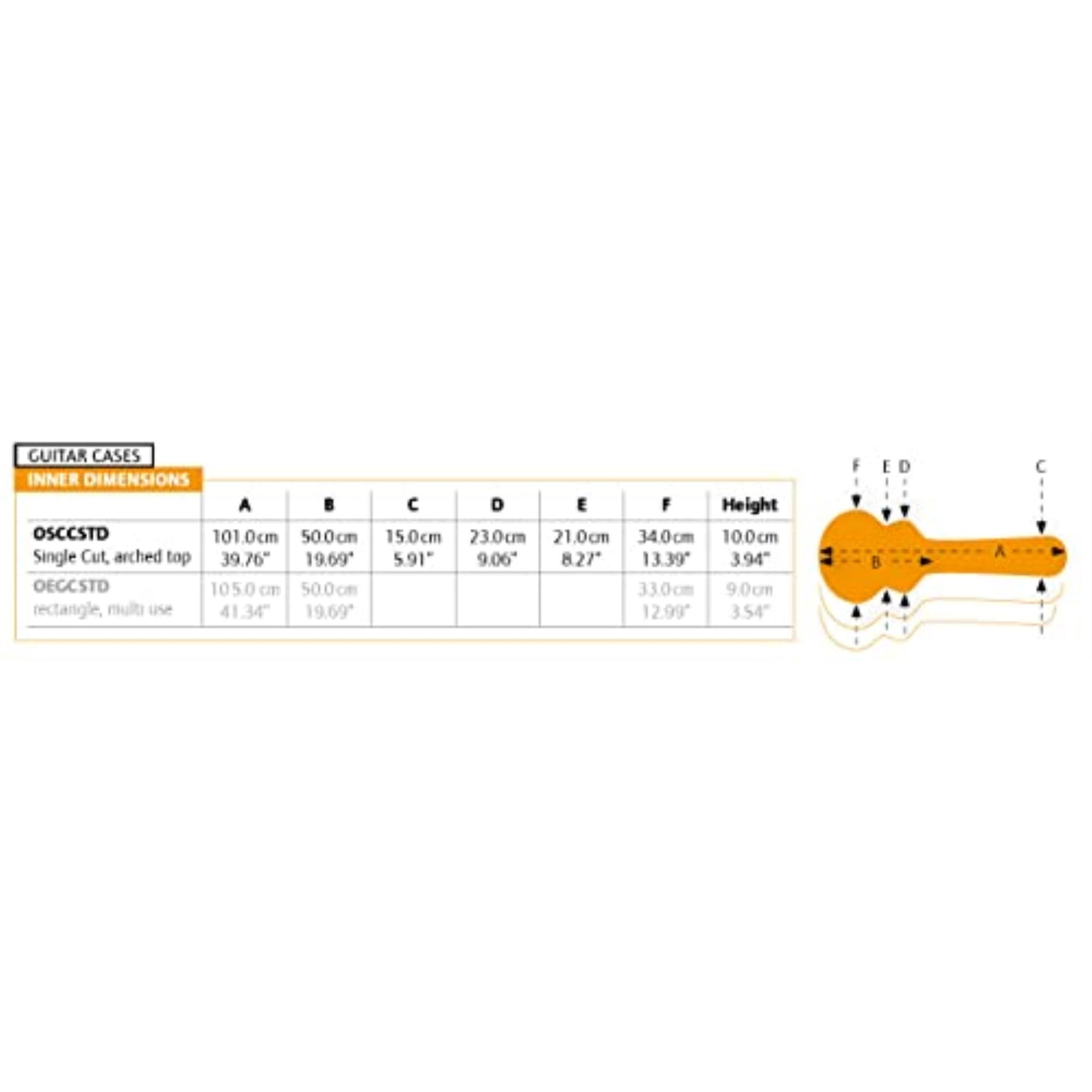 - Q: What are the dimensions of the Ortega Guitars Rectangular Electric Guitar Economy Hardshell Case? A: The dimensions inside the case are: Overall Length 41.34 inches, Body Length 19.68 inches, Lower Bout Width 12.99 inches, and Body Height 3.54 inches.