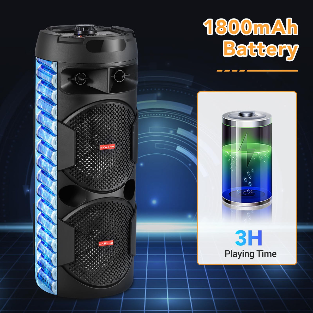 ROXAAN TWS Portable Wireless Bluetooth Speakers with Dual 6.5'' Subwoofer, PA Speaker Singing System for Home/Party/Beach, Outdo