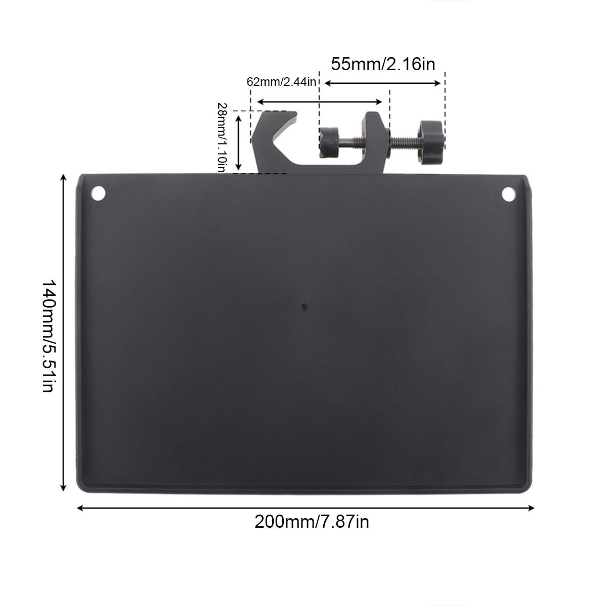 • Q: Is the clamp on the tray adjustable? A: Yes, the tray features a C-shaped clamp that can be easily adjusted to fit microphone stands with tubing sizes up to 1.18 inches (3 cm) in diameter.