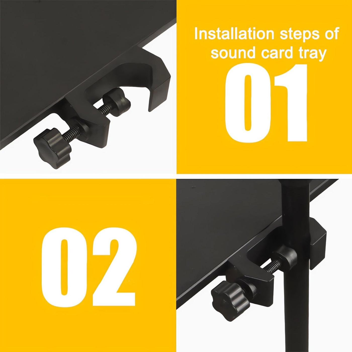 • Q: How easy is it to install the microphone stand tray? A: Installation is simple and requires no tools. The C-shaped clamp allows for quick mounting and height adjustment as needed.