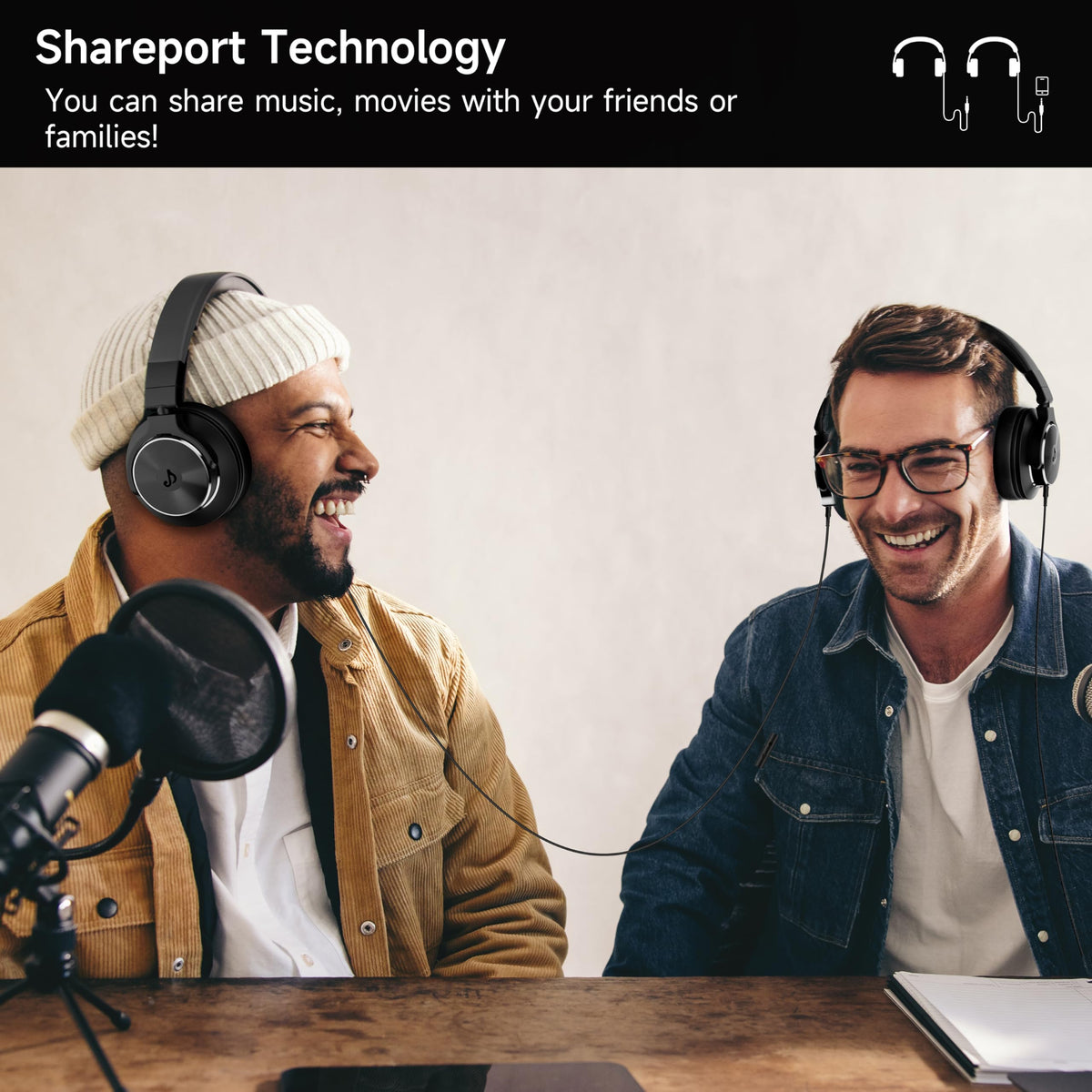 - Q: Do these headphones allow for audio sharing? A: Yes, the headphones have a unique feature that enables audio sharing. You can connect the main headphones to your device and then plug in additional headphones for a seamless audio experience.