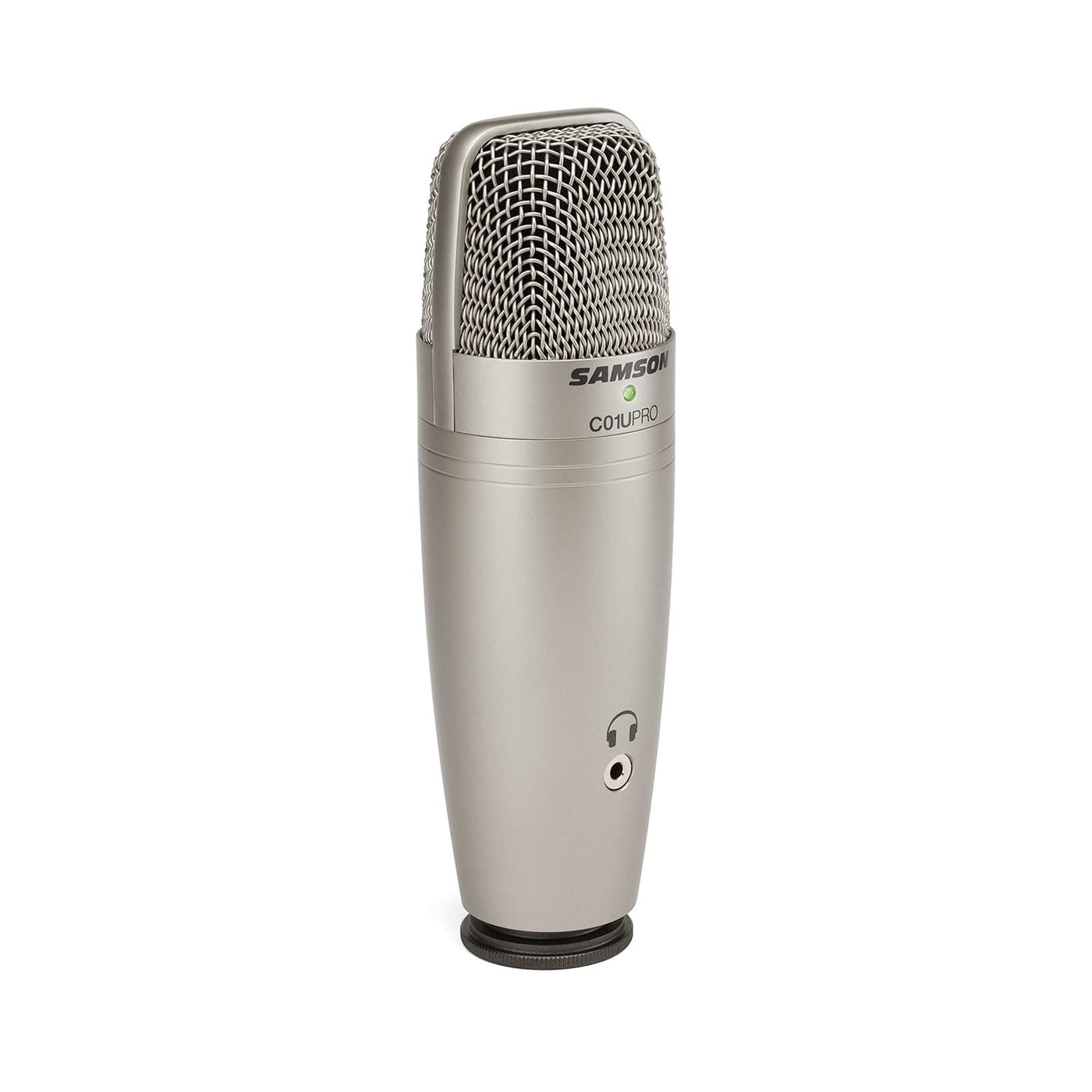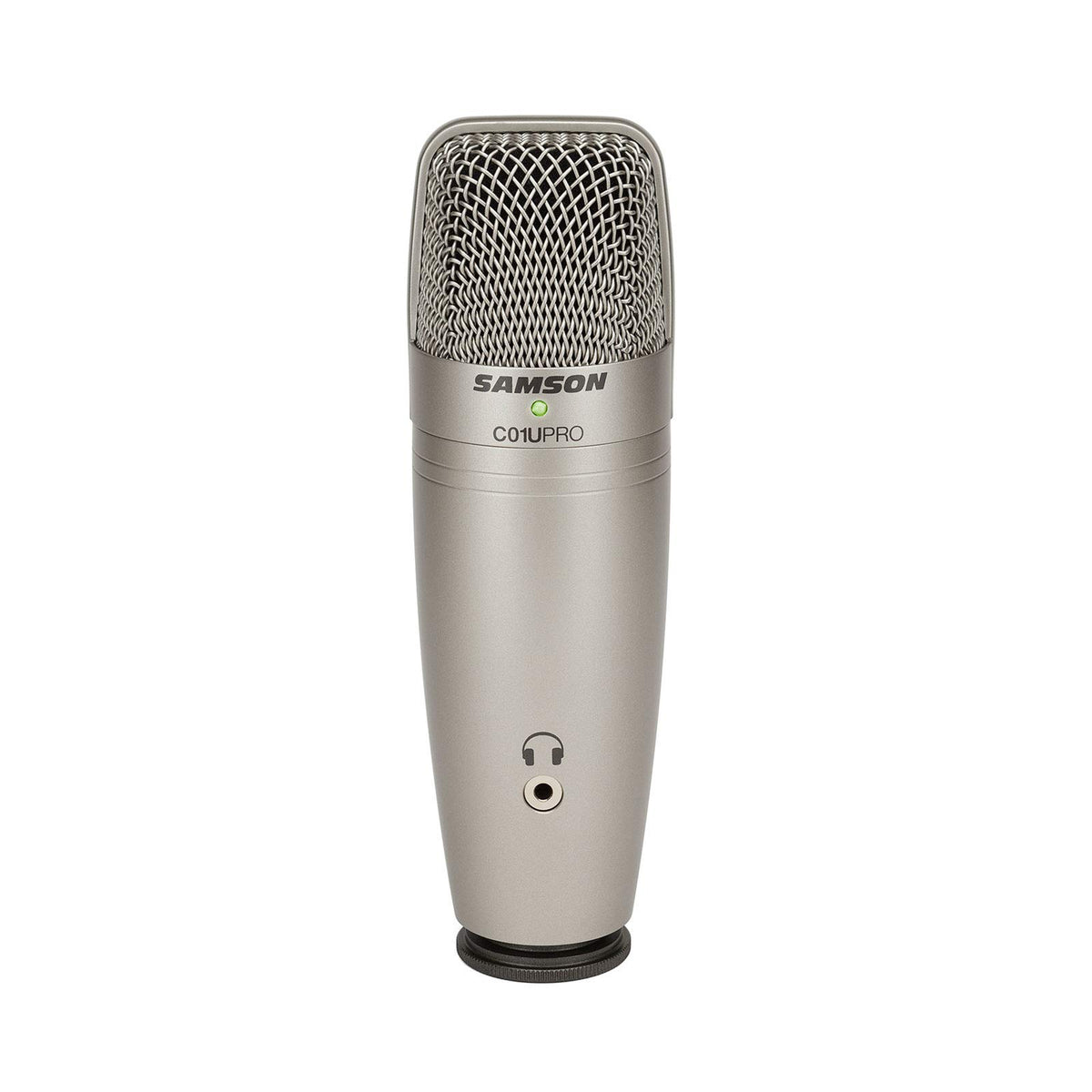 A New LevelBringing the world's first professional USB studio condenser microphone (C01U) to a new whole level, SAMSON introduces the C01U Pro. This high quality USB condenser mic is the ideal piece of gear for any home studio. Conceived from a vision to transform the world of music recording, the C01U Pro is perfect for applications such as podcasting, VoIP, speech to text platforms and, of course, recording vocal and instrumental music performances. A high quality USB condenser mic ideal for any home studio.View larger Plug-and-play operation for instant set up and simple use with most digital audio workstations.View larger Higher Accuracy, Zero LatencyC01U Pro builds on the legacy of its trailblazing predecessor with the addition of a headphone output for real time zero-latency monitoring of your recordings. It also boasts a significantly improved signal-to-noise ratio and adds a Peak LED indicator to match the ever-increasing capabilities of computer-based home studio recording setups. C01U Pro features a large, 19mm shock-mounted diaphragm efficient in capturing both low and high end frequencies with equal articulation. Capturing audio at 16-bit, 44.1/48kHz resolution, the C01U Pro offers the accuracy you need to be sure that what you hear is what you get. Plug-and-Play OperationAs always, SAMSON makes recording hassle free with the C01U Pro's plug-and-play operation for instant set up and simple use with most digital audio workstations. C01U Pro also includes a mini tripod stand and swivel mount, allowing for optimal desktop mic placement. C01U Pro is even compatible with iPads and iPhones (4S and later) using Apple's Lightning USB Camera Adapter or Camera Connection Kit (30-pin) for those seeking to achieve high quality sound in mobile situations. Durable ConstructionMade of solid, die-cast metal construction with a heavy gauge mesh grill, the C01U Pro doesn't sacrifice durability for portability and performance. What's in the Box?C01U Pro USB Studio Condenser Microphone, mini tripod stand, swivel mount, user manual. Key Features Large, 19mm diaphragm studio condenser microphone Plug-and-play operation, no drivers required Compatible with most computer-based digital audio workstations Perfect for recording music, Skype, FaceTime and VoIP applications Headphone output for zero-latency monitoring Peak LED indicator Hypercardiod pickup pattern Shock-mounted mic element 16-bit, 44.1/48kHzresolution Smooth, flat frequency response of 20Hz - 18KHz iPad and USB bus powered Solid, die-cast construction with heavy gauge mesh grill Includes mini tripod stand and swivel mount for optimal desktop placement