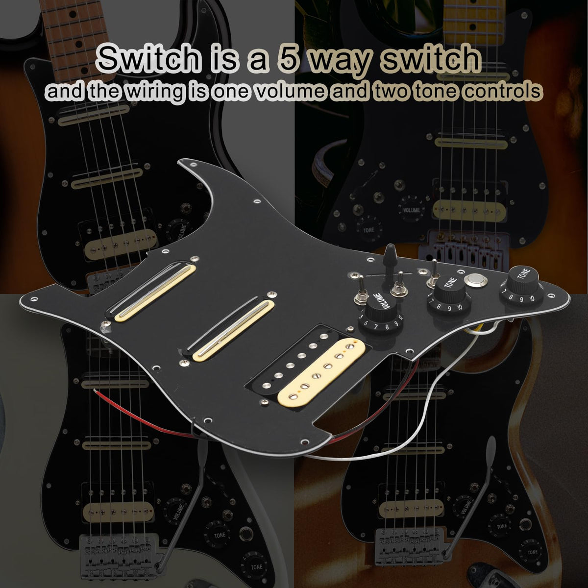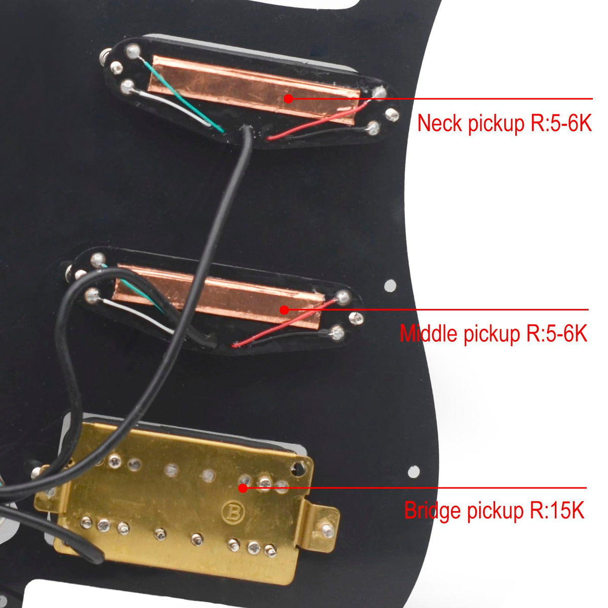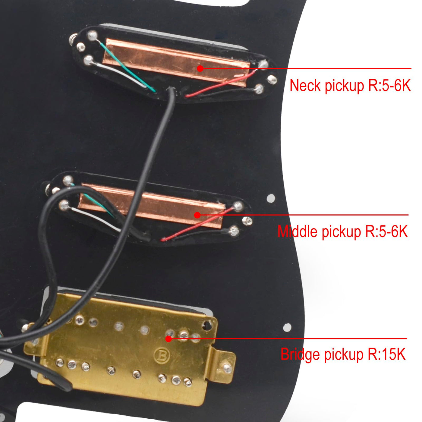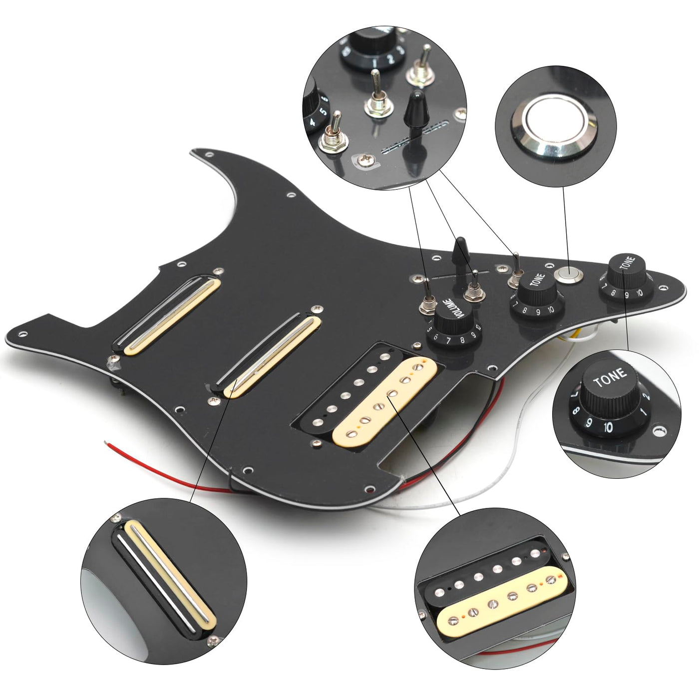 SAPHUE SSH-Coil Splitting Electric Guitar Pickguard Two Mini Humbucker + ONE Humbucker(9K/9K/15K)+Silence Switch Loaded Prewired