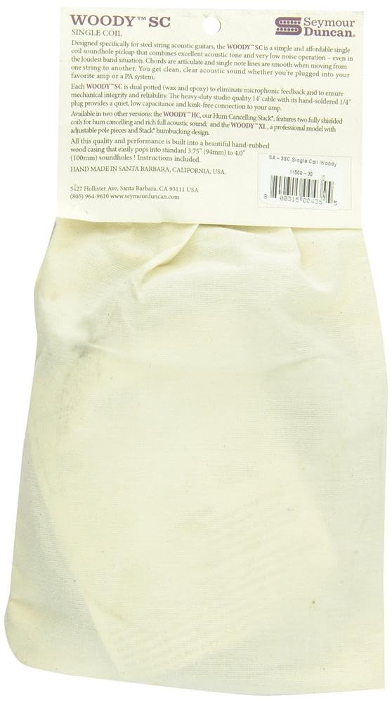 - Q: What is the Seymour Duncan SA-3SC Woody SC Acoustic Soundhole Pickup? A: The Seymour Duncan SA-3SC Woody SC Acoustic Soundhole Pickup is a magnetic single coil pickup designed for standard steel string acoustic guitars. It fits sound holes with a radius of 3.85" to 4.10".