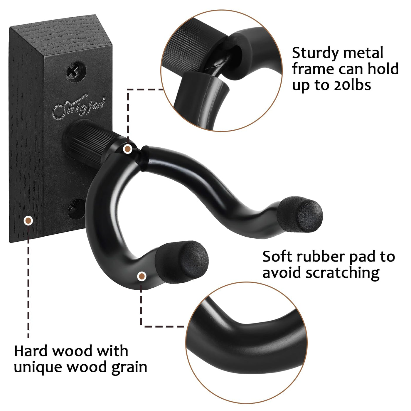 SNIGJAT Guitar Wall Mount, 4 Pack Guitar Wall Hanger, Guitar Hanger Wall Hook Holder Stand, Hardwood Guitar Wall Mount Hanger fo