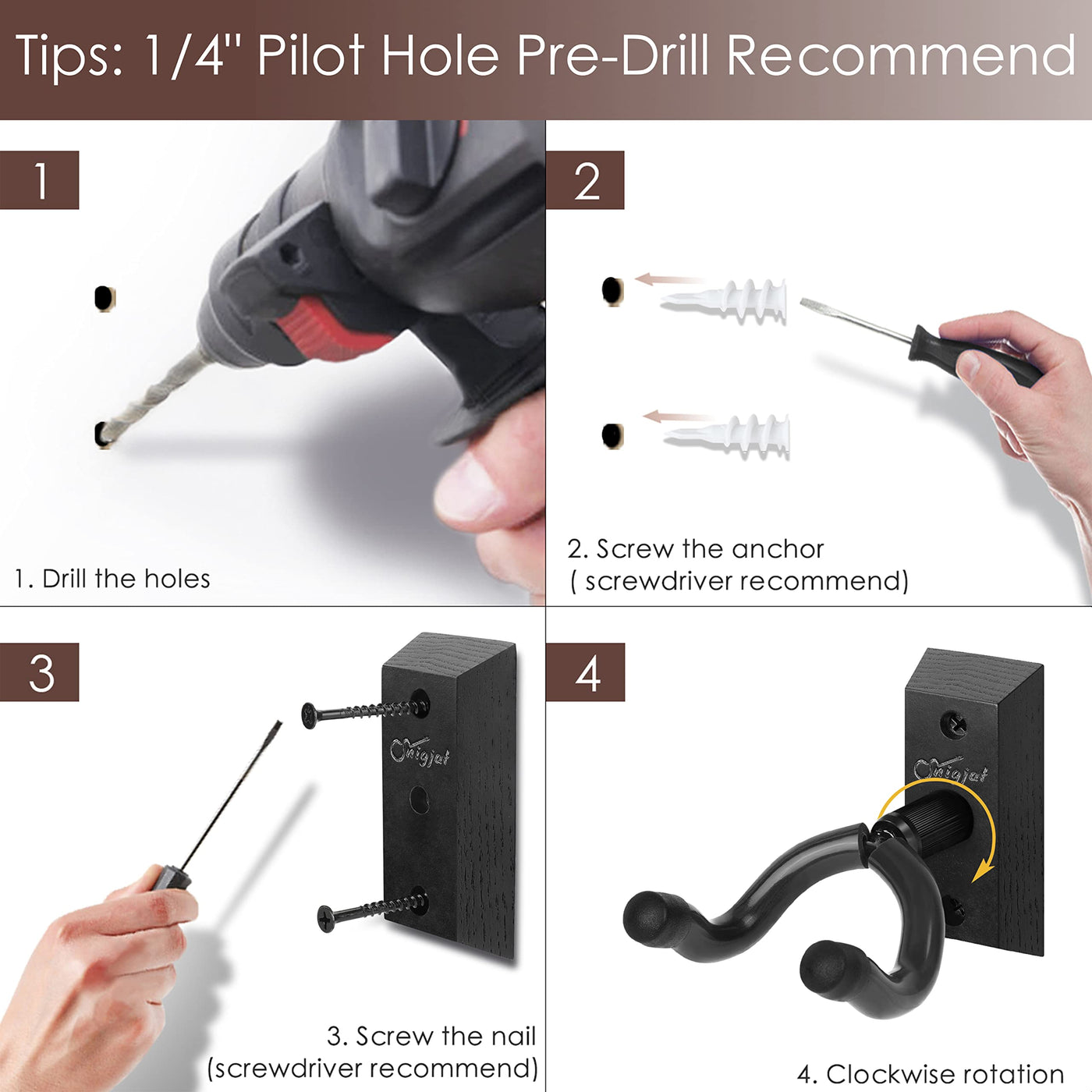 - Q: Is the guitar hanger easy to install? A: Yes, the guitar hanger comes with two long screws and robust drywall anchors for easy installation on various wall types.