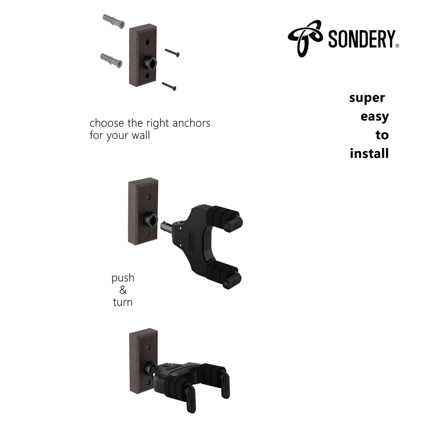 • Q: Is the guitar hanger easy to install? A: Yes, the Sondery Guitar Hanger features a unique Push & Turn design that simplifies the installation process, allowing you to mount it in seconds.