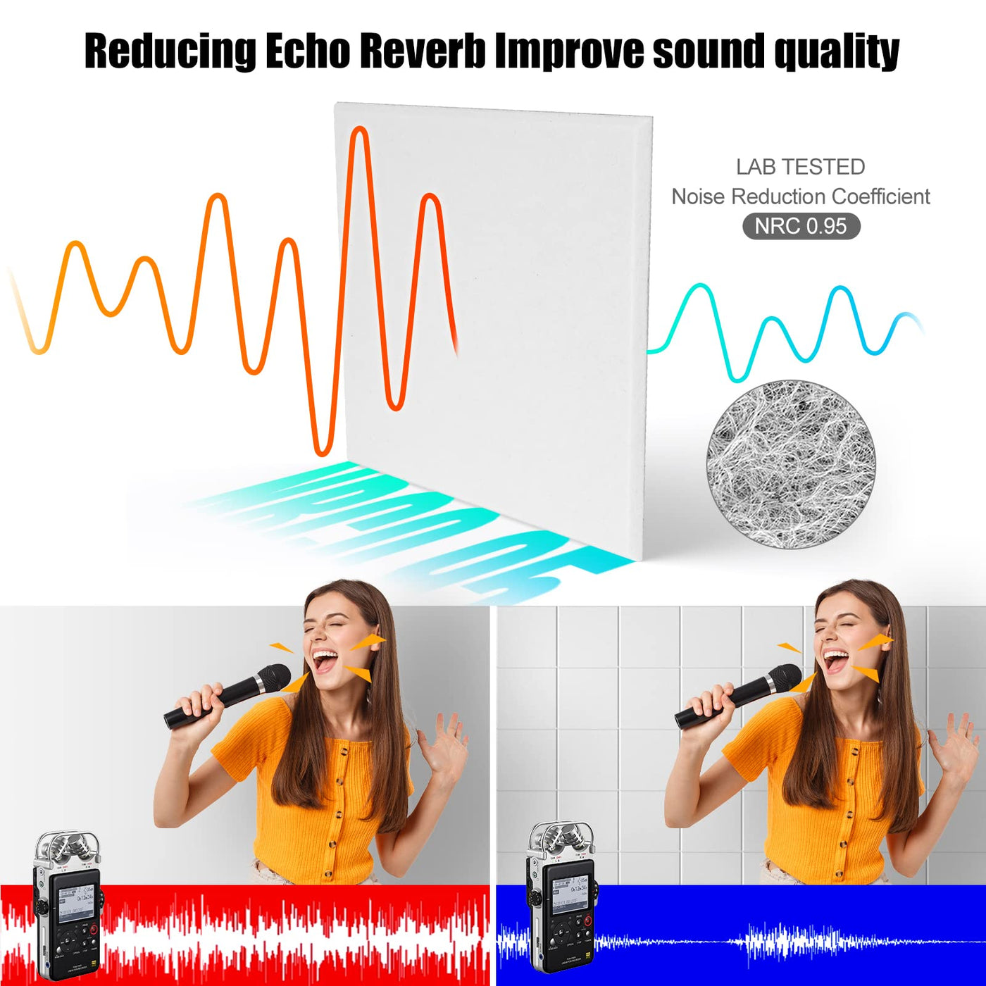- Q: What are Sonicism Acoustic Wall Panels made of? A: The Sonicism Acoustic Wall Panels are made from soundproof foam designed to absorb sound and reduce noise in various environments.