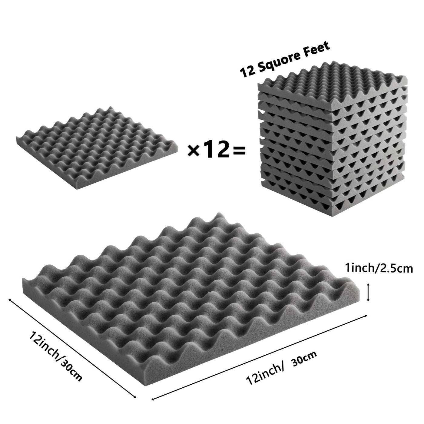 - Q: How many panels are included in a pack? A: Each pack contains 12 acoustic foam panels.
