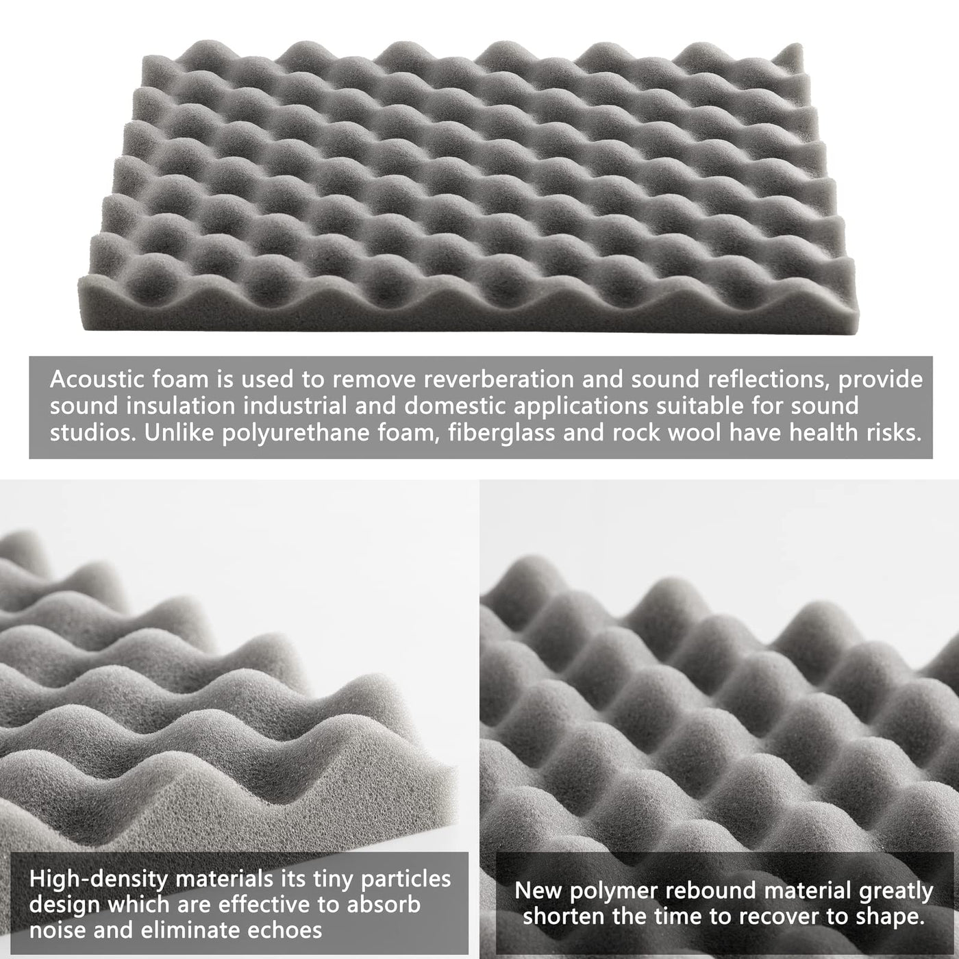 Sound Proof Foam Panels for Walls: 12 pcs Acoustic Foam Panels with Double Side Adhesive Sticker for Studio Recording Office Bed