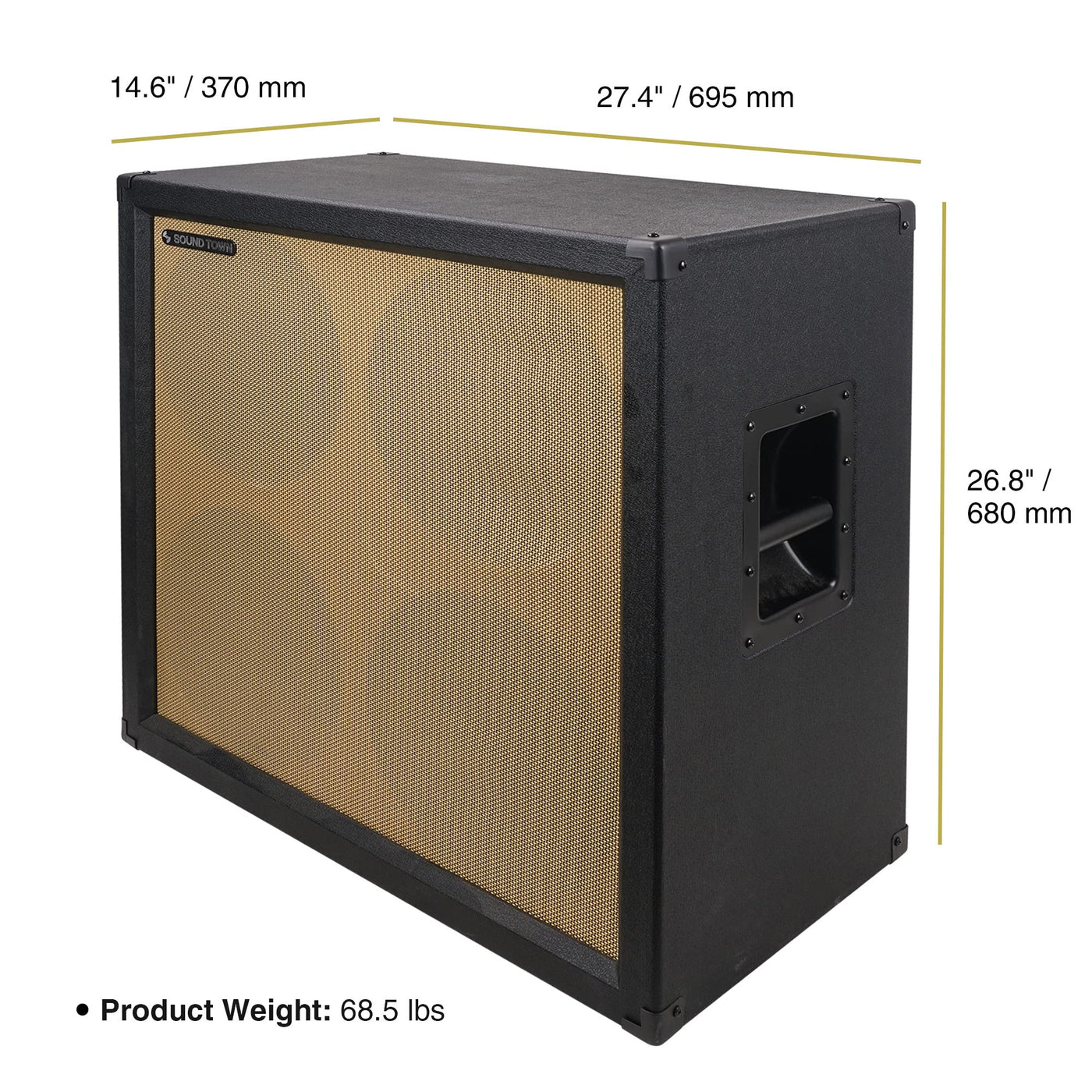 Sound Town 4 x 12 260W Guitar Speaker Cabinet, Birch Plywood, Black Tolex, Wheat Cloth Grille (GUC412BK)