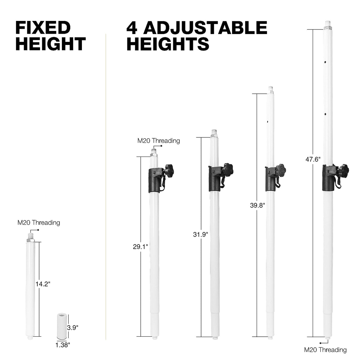 Sound Town Speaker Pole Set, 29''-48'' Adjustable Height Subwoofer/Speaker Pole and 14'' Fixed Height Extended Pole with M20 & 3