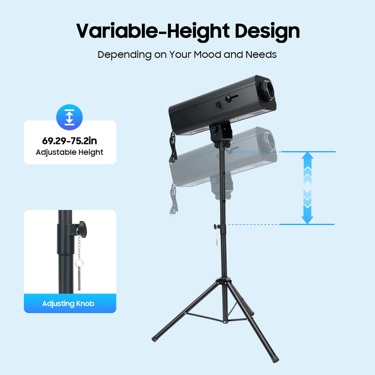• Q: Can I adjust the height of the tripod? A: Yes, the tripod bracket is adjustable between 69.29 inches to 75.2 inches to meet your desired lighting angles.