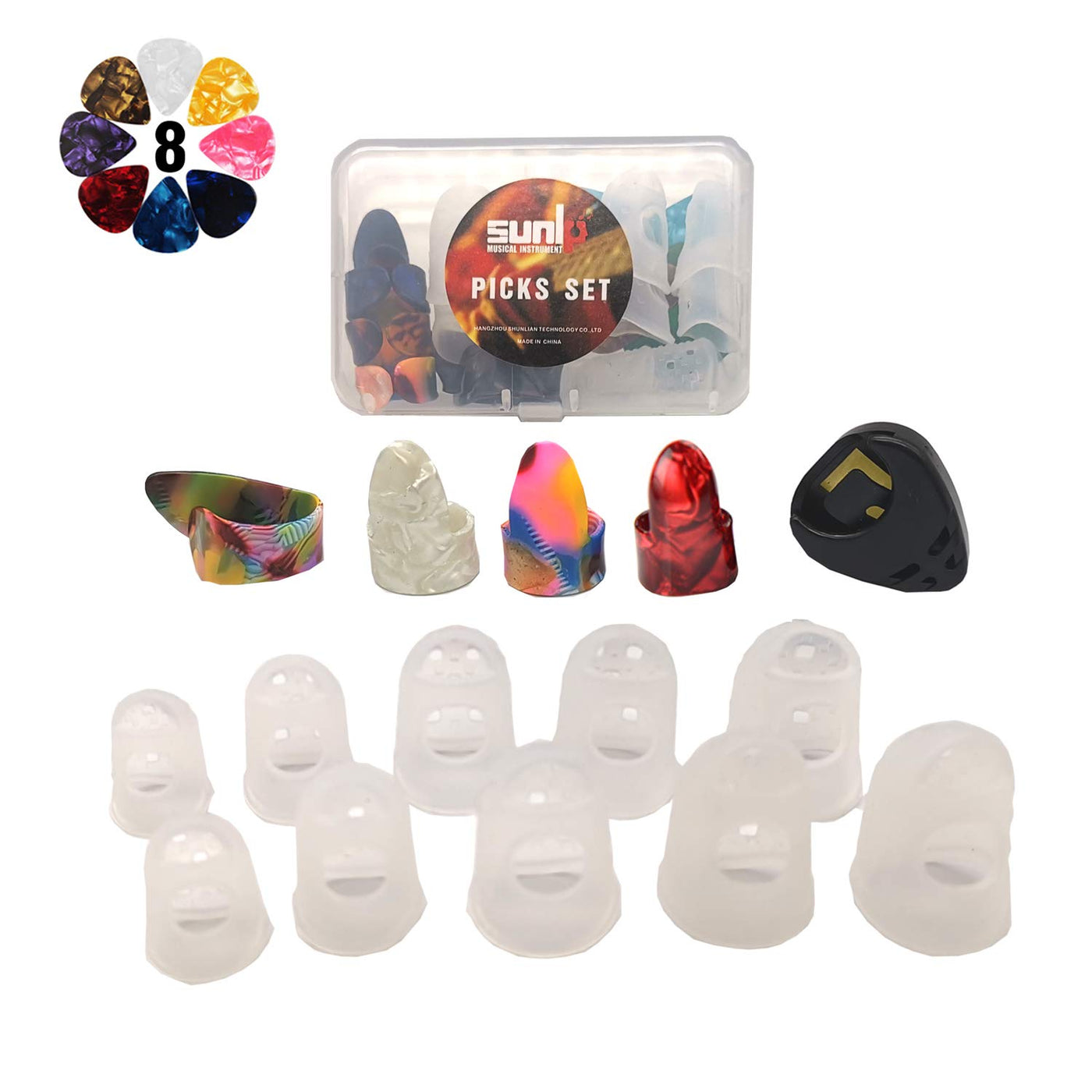 - Q: What sizes are included in the SUNLP Thumb Finger Picks set? A: The SUNLP Thumb Finger Picks set includes 10 guitar finger protectors in five sizes: L, M, S, XS, and XXS, with 2 pieces of each size.