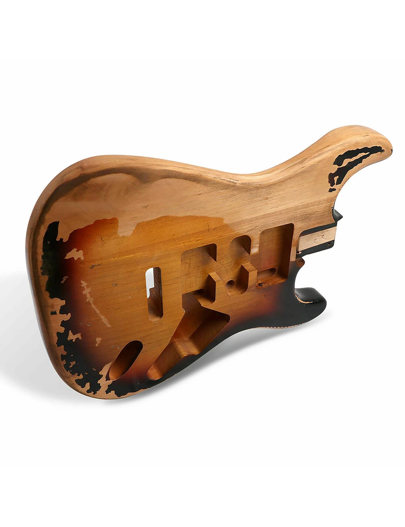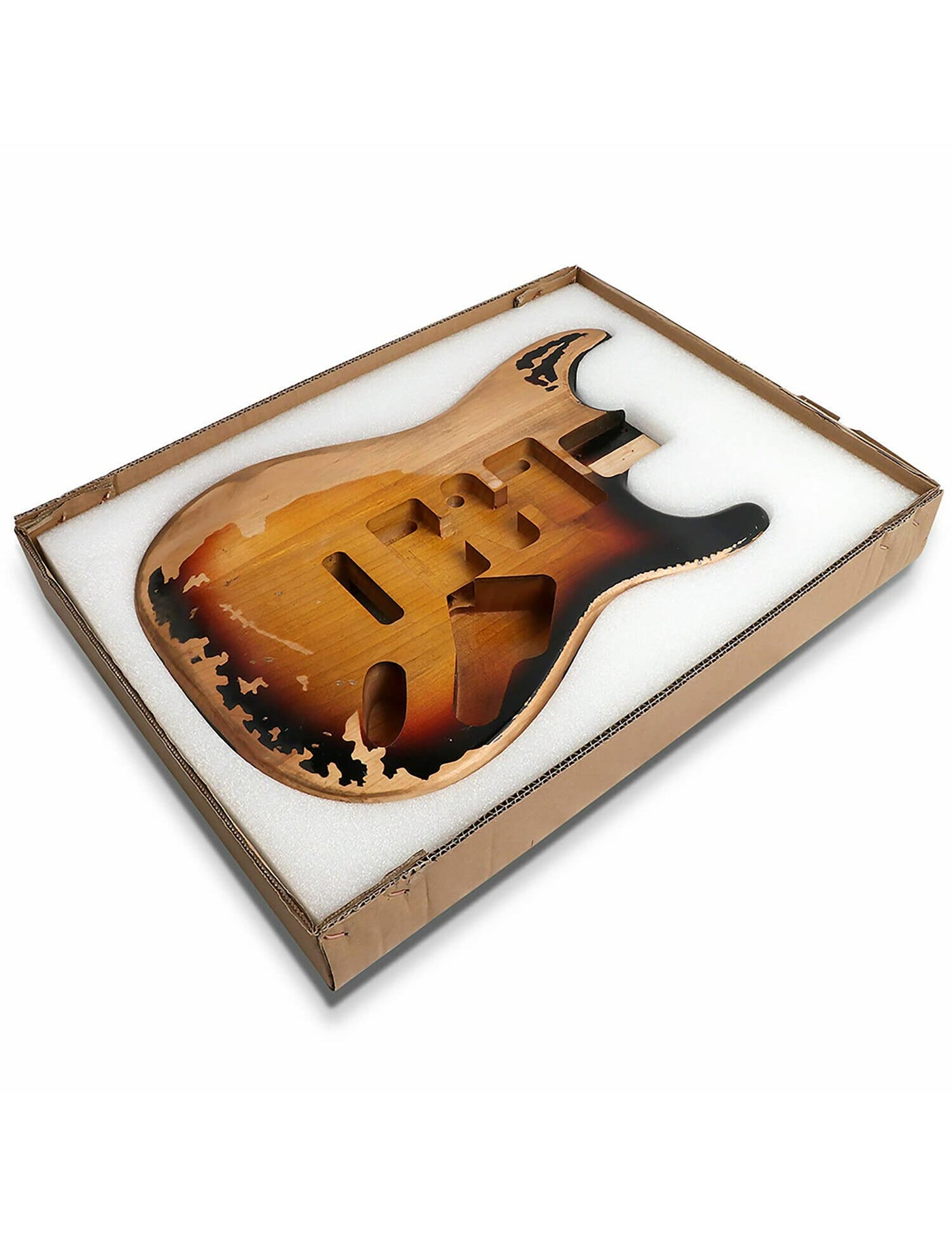 - Q: What color options are available for this guitar body? A: This guitar body features a relic 3 Tone Sunburst finish, which gives it a vintage look.
