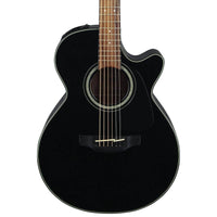 The GF30CE is a sleek-looking acoustic/ electric guitar that features solid-top construction, superior-sounding electronics and Takamine's diminutive FXC body style with a soft Venetian-style cutaway. A great choice for any player seeking the well-balanced sound of a small-bodied guitar, the GF30CE combines a solid spruce top with mahogany back and sides that produce notable sweetness and articulation. The slim mahogany neck and 12''-radius rosewood fingerboard provide great feel and playability, while the onboard Takamine TP-4TD preamp system gives you a built-in tuner with three-band EQ and gain controls for excellent amplified performance and versatility. Other great features include a pin-less rosewood bridge, synthetic bone nut and split bridge saddle, rosewood headcap, pearloid rosette and dot inlays, chrome die-cast tuners and a beautiful gloss finish. Available in Natural, Black and Sunburst.