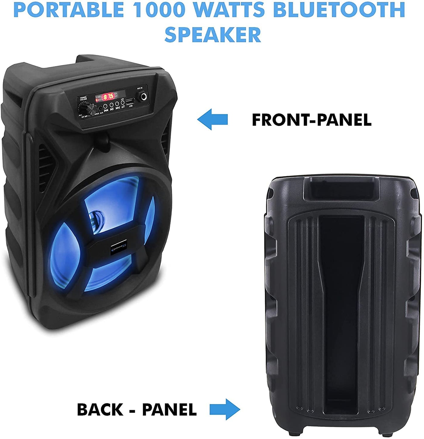 Technical Pro 500 Watts Portable 8 Inch Bluetooth Speaker w/Woofer & Tweeter, True Wireless Stereo w/Digital Processing Wired Mi