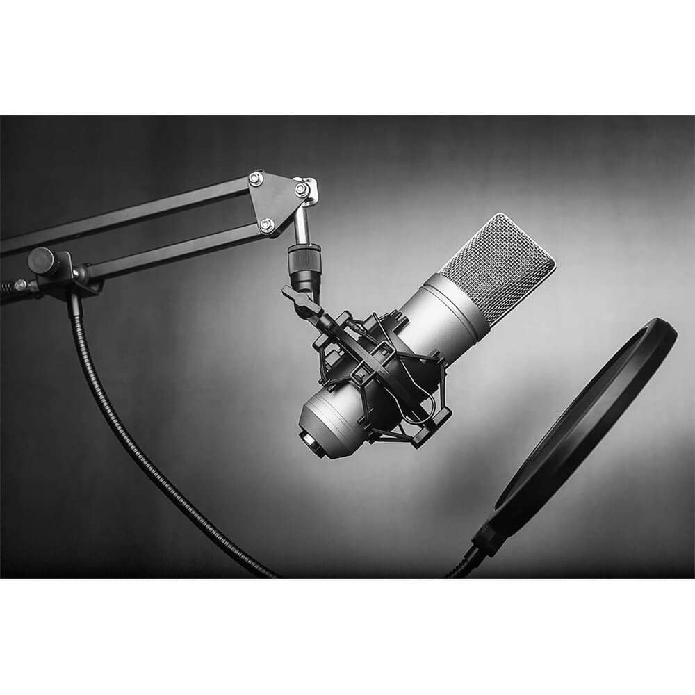 - Q: What is included in the Technical Pro UM3PKG Professional USB Condenser Microphone Starter Package? A: The package includes a nickel plated condenser microphone, a shock mount, a suspension arm, a pop filter, a 6-foot USB cable, and Audacity recording software.