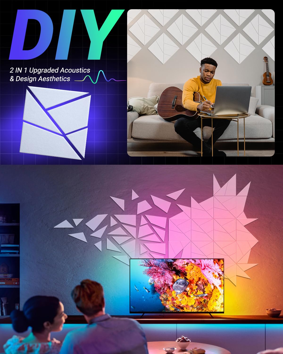 • Q: What types of environments can these panels be used in? A: These acoustic panels are suitable for various environments such as music rooms, studios, home theaters, bedrooms, offices, and even shared living spaces.