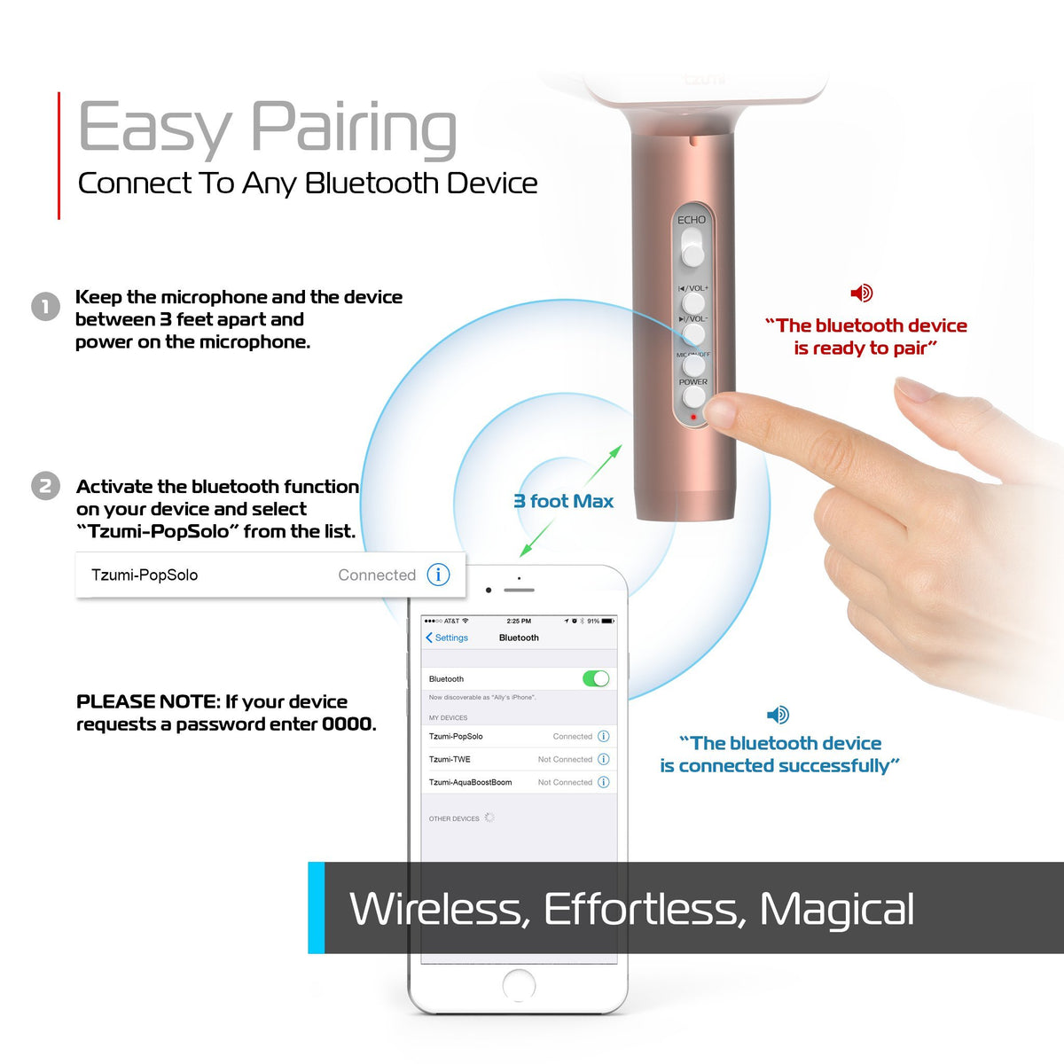 Tzumi PopSolo Professional Bluetooth Karaoke Microphone and Voice Mixer with Smartphone Holder - Great for Kids and Parties - Ro