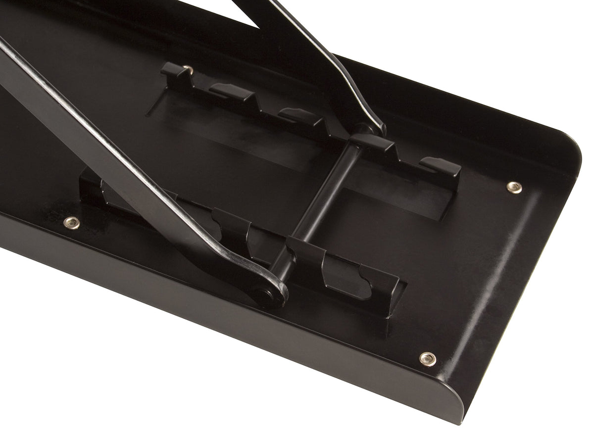 • Q: What are the height settings for the Ultimate Support JamStands FT100B Guitar Foot Stool? A: The foot stool offers four fixed height settings, allowing users to adjust it for personalized mic positioning.