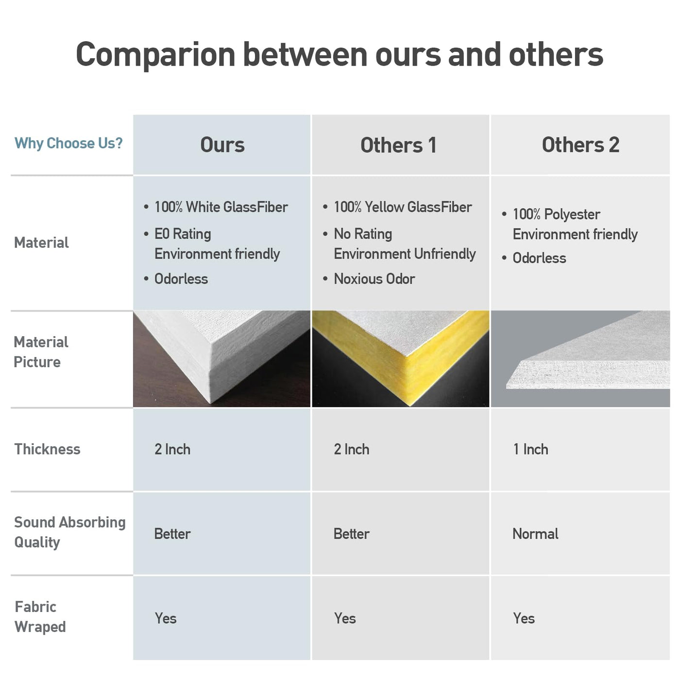 - Q: What is the sound absorption rating of these panels? A: These acoustic panels have a Noise Reduction Coefficient (NRC) of 0.95, indicating superior sound absorption compared to standard 1-inch thick panels.