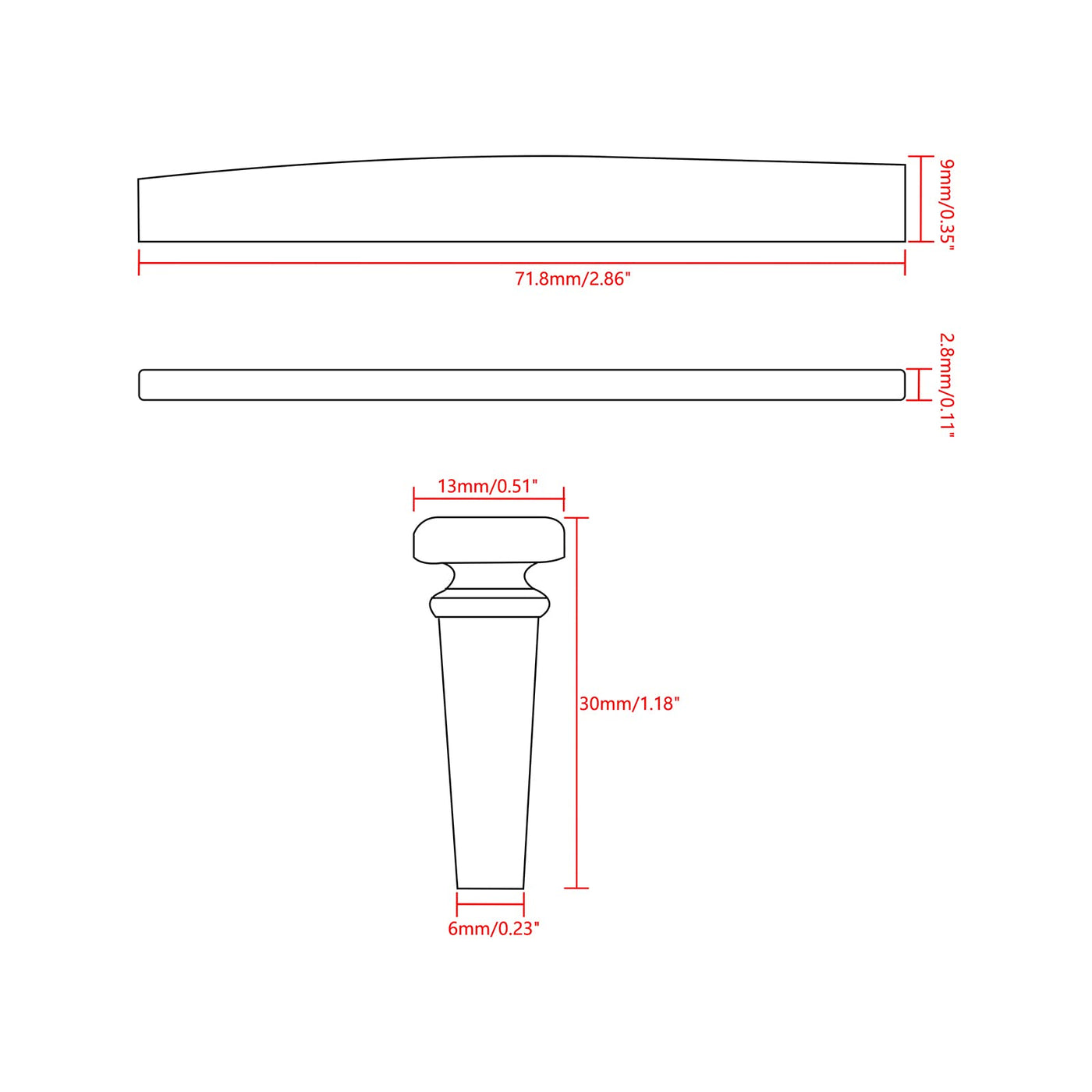 - Q: What are the dimensions of the guitar nut? A: The guitar nut has a length of 71.8mm and a thickness of 2.8mm.