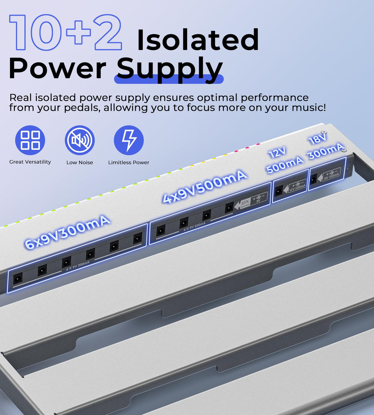 - Q: Does the Vangoa Pedal Board come with a power supply? A: Yes, the Vangoa Pedal Board includes an integrated isolated power supply that provides clean and reliable power to your pedals.
